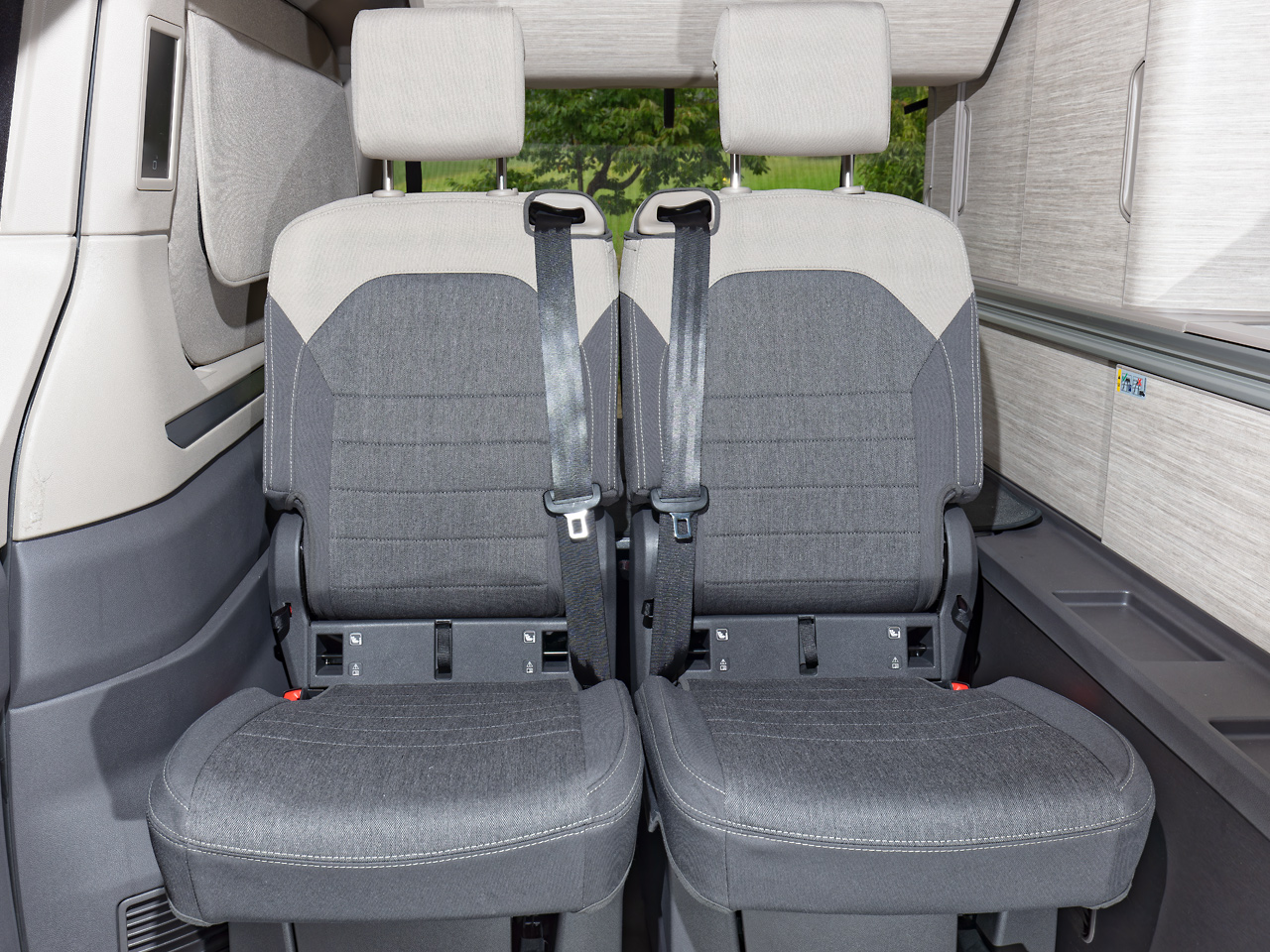 Second Skin Schonbezüge für den linken oder rechten Schlafsitz im Fahrgastraum entsprechen dem VW T7 California Ocean/Coast Design, sind aus den VW-Originalstoffen hergestellt und passen auch für die Schlafsitze der California Beach Tour sowie California Beach Camper.